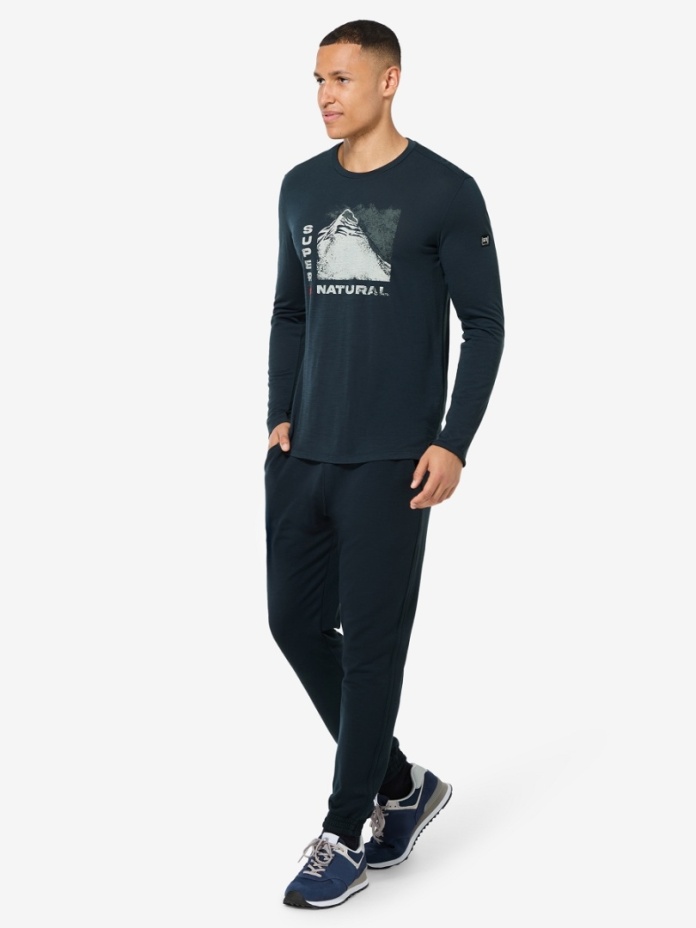 Koszulka męska z wełny merino Super.Natural Super Mountain LS z długim rękawem - granatowy