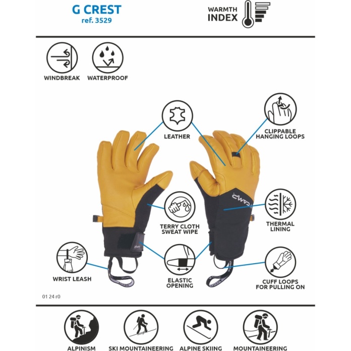 Camp G Crest to rękawice stworzone z myślą o wymagającym, zimowym terenie. Sprawdzają się podczas aktywności, w których liczy się połączenie wytrzymałości, ochrony i dobrej kontroli nad sprzętem. Konstrukcja z trwałej skóry koziej obejmuje dłoń, palce i kostki, co zwiększa odporność na przetarcia oraz poprawia chwyt w mokrych i zimnych warunkach.
