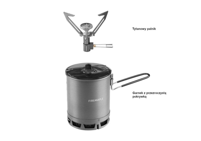 Materiał: garnek (aluminium), palnik (tytan, stal nierdzewna, aluminium, miedź)